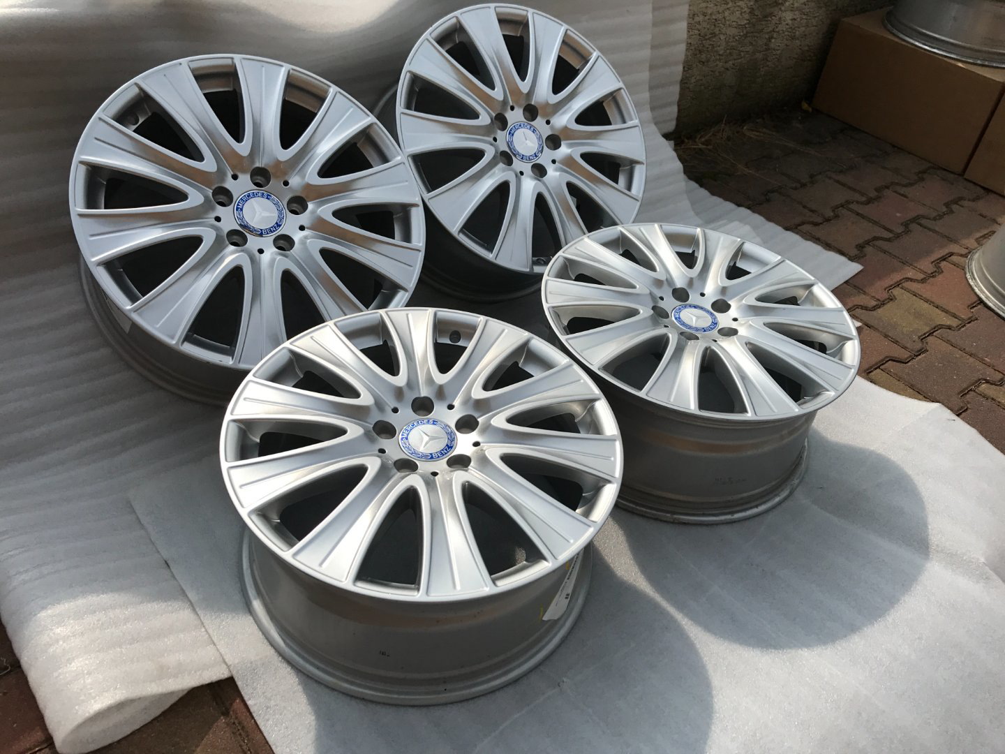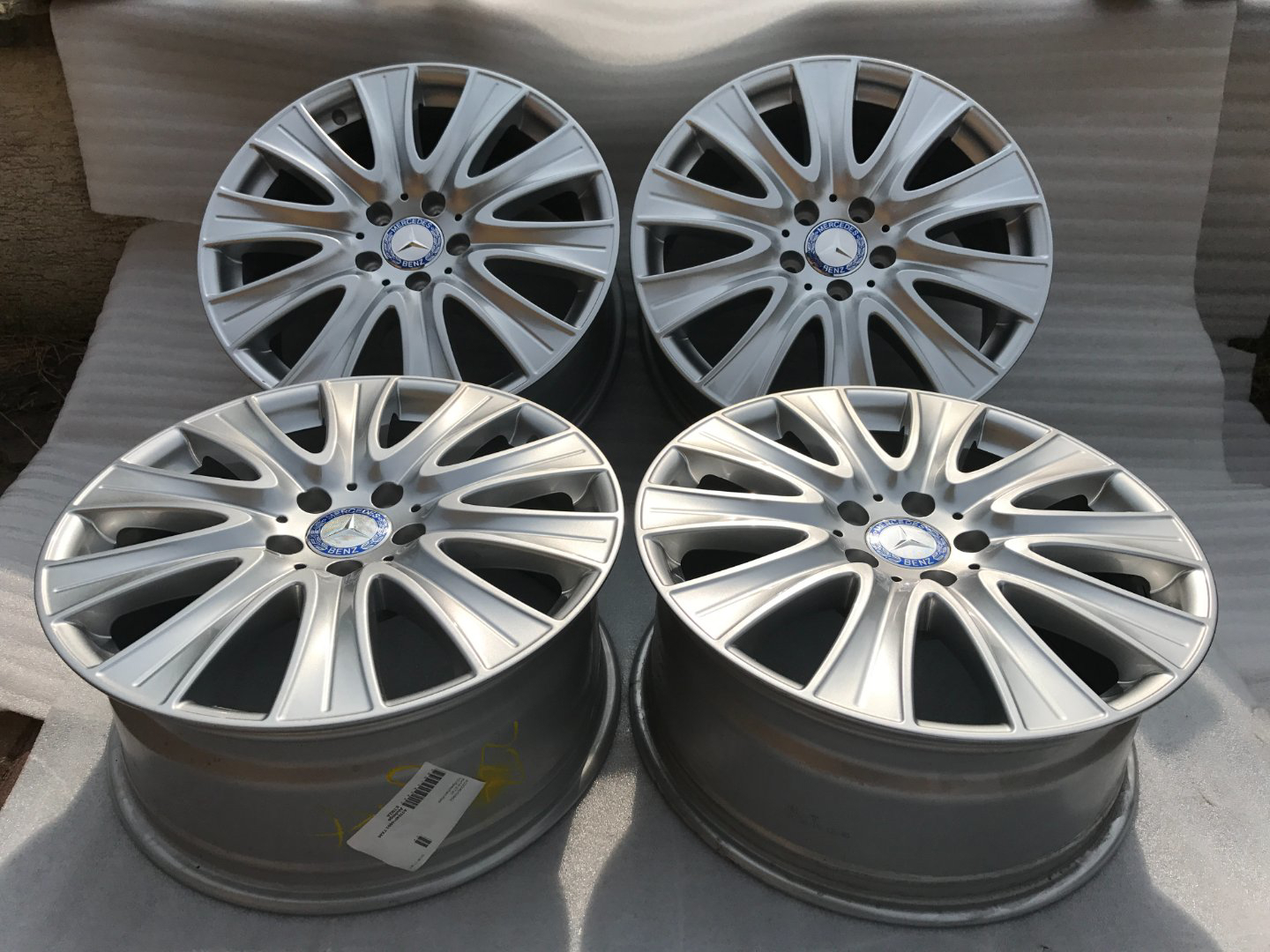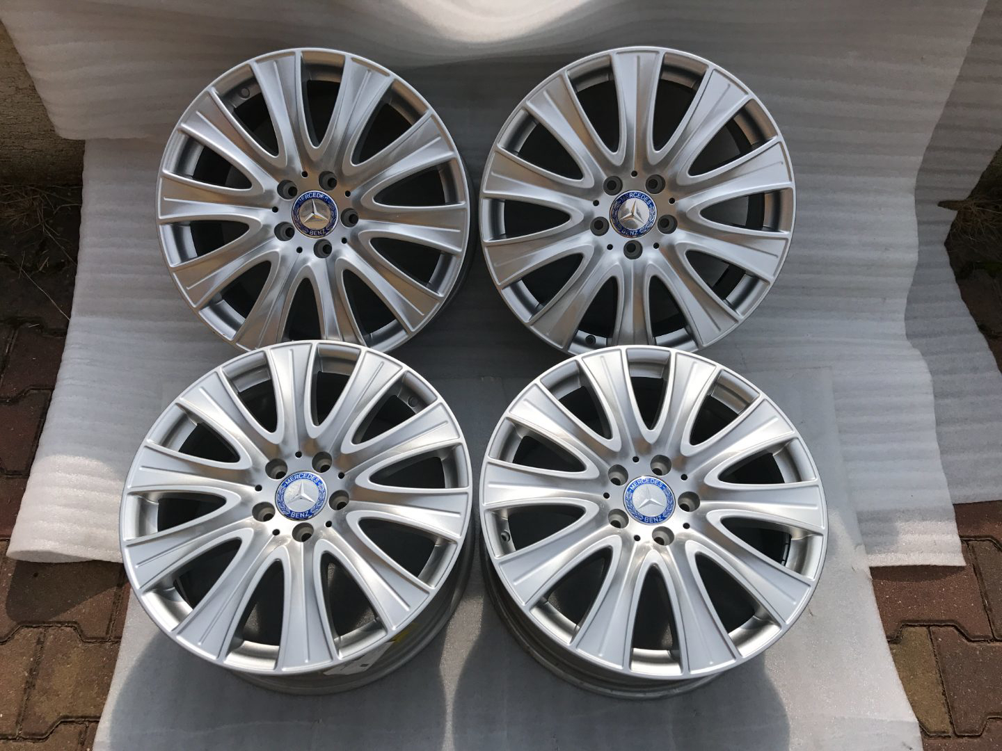 Sada originál Mercedes 18”. Číslo dílu A2224010902. Celá sada je v naprosto TOP stavu. Cena je uvedena bez DPH. Disky mají rozměr 8Jx18 ET41, rozteč šroubů 5x112. Kola pasují také na Mercedes E , třídu V W447a další modely. Středové pokličky nejsou v ceně, lze je dokoupit za 400,- Kč za sadu. Mohu dodat i čidla tlaku v pneumatikách. Není problém zaslat na dobírku.