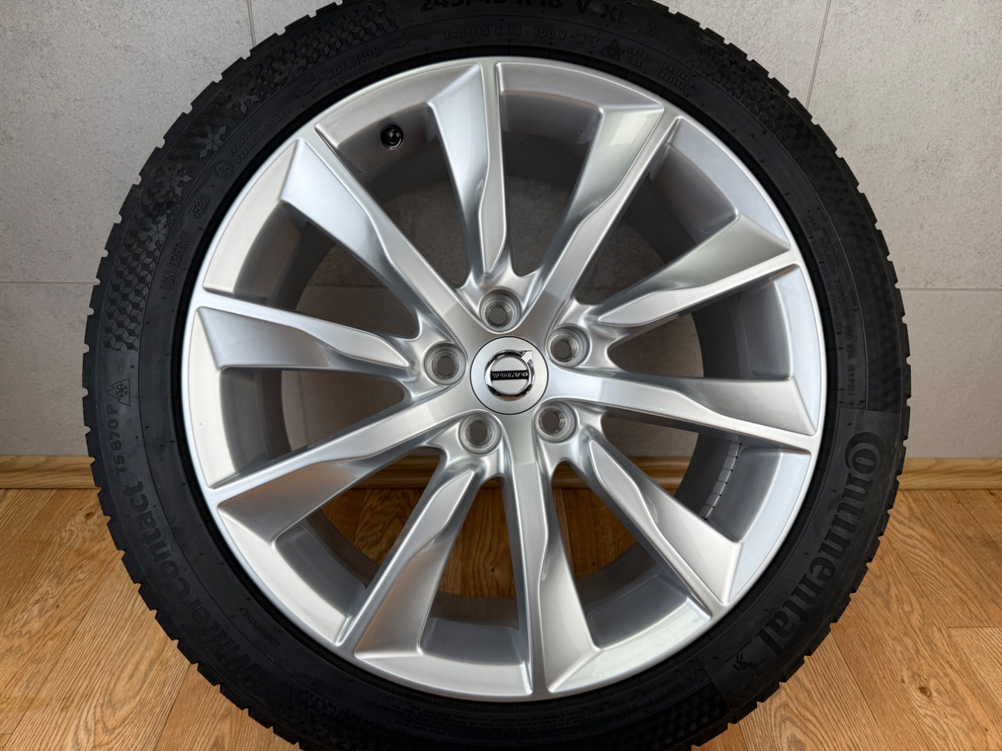 Originální sada Volvo V90 18”. Disky jsou v naprosto TOP stavu. Cena je uvedena bez DPH. Disky 8Jx18 ET42 , 5x108. Včetně kvalitních zimních pneumatik Continental WinterContact TS870P rozměr 245/45 R18 se vzorkem 95%. Výrobní číslo 31362840. Pasují na S90 V90 S60 V60 a další modely Volvo a Ford. Středové pokličky nejsou v ceně, lze je dokoupit za 400,- Kč za sadu. Není problém zaslat na dobírku. Sada č. 0901