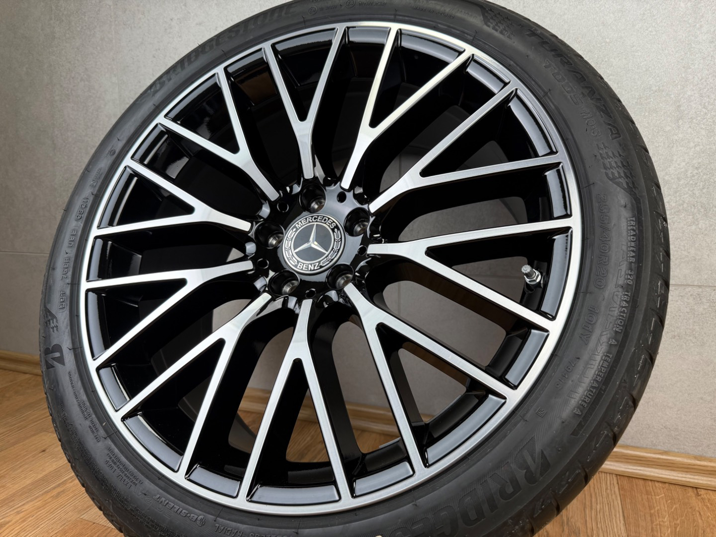 Originál sada Mercedes 20”. Disky i pneu jsou v naprosto TOP stavu. Cena je uvedena bez DPH. Disky 9Jx20 ET34 a 10Jx20 ET48,1. Číslo dílu A2234013800 A2234013900. Včetně kvalitních letních pneumatik Bridgestone Turanza T005 255/40 R20 a 285/35 R20 se vzorkem 99%. Pneumatiky mají homologaci MO-S dodávané přímo pro Mercedes. V ceně sady jsou i senzory tlaku v pneumatikách. Pasují i na Mercedes S W222 a další modely. Prodej bez středových krytek, lze je dokoupit za 400,- Kč za sadu. Není problém zaslat na dobírku. Sada č. 0922