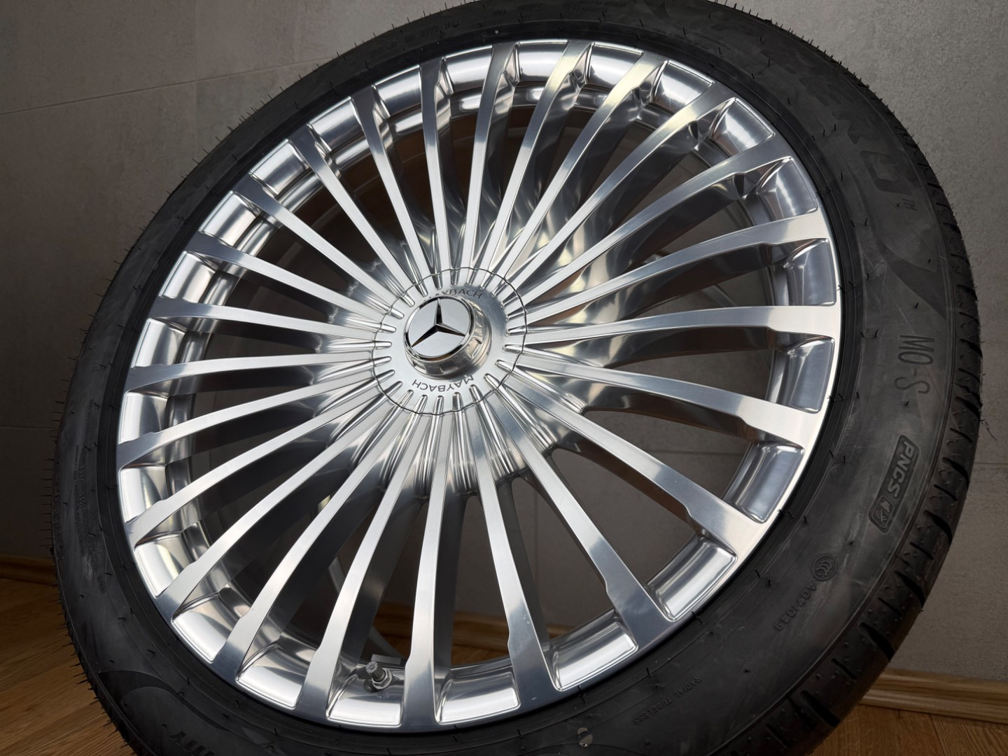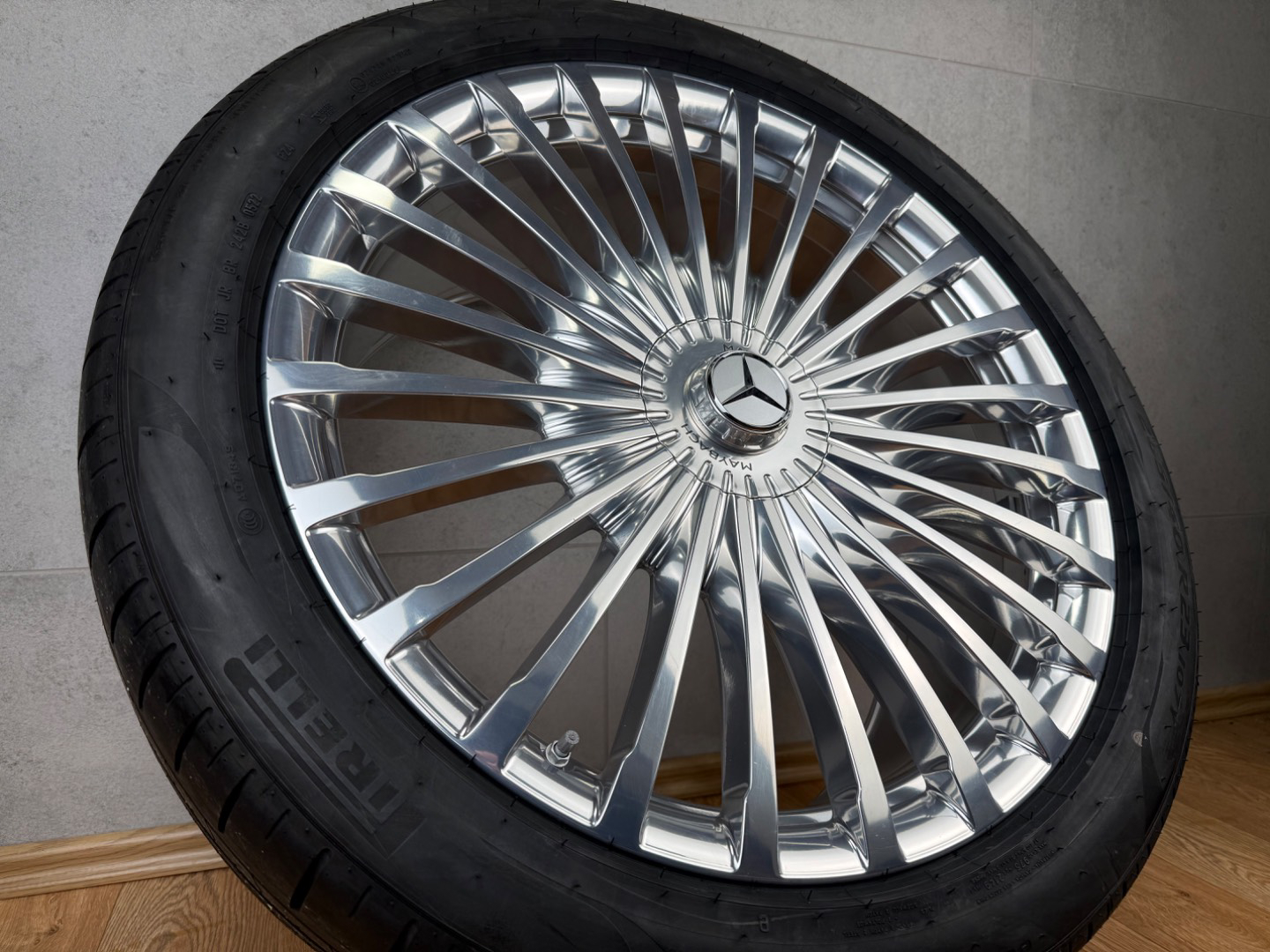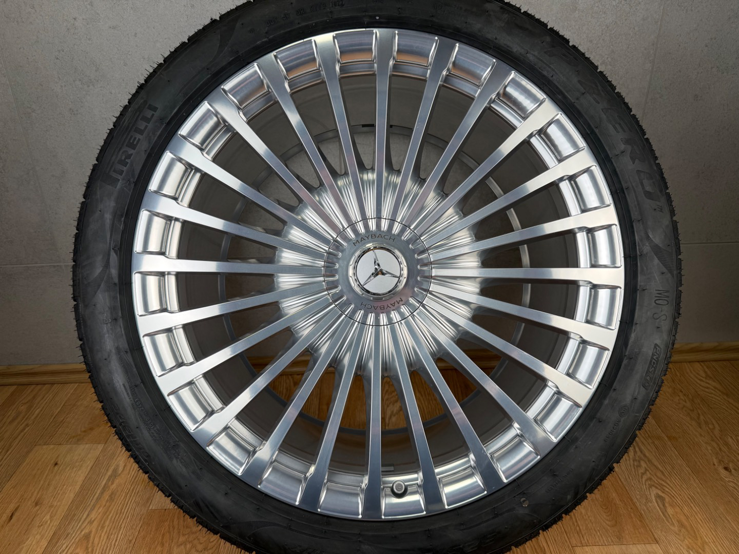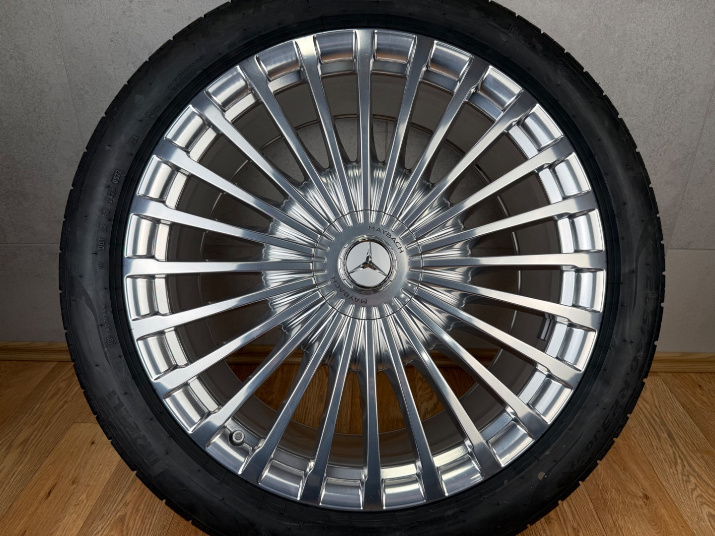 Sada originál Mercedes GLS X167 Maybach 23”. Celá sada je v naprosto TOP stavu, sundaná z předváděcího vozu. Cena je uvedena bez DPH. Kola pasují na Mercedes GLS X167 od r.v. 2019. Disky 9,5Jx23 ET47 a 11,5Jx23 ET47, rozteč šroubů 5x112. Číslo dílu A1674011600 A1674011700. Včetně kvalitních letních pneumatik Pirelli PZero 285/40 ZR23 a 325/35 ZR23 se vzorkem 99%. Pneumatiky s homologací MO-S , dodávané originál pro Mercedes. V ceně sady jsou senzory tlaku v pneumatikách a originální středové pokličky. Není problém zaslat. Sada č.0942