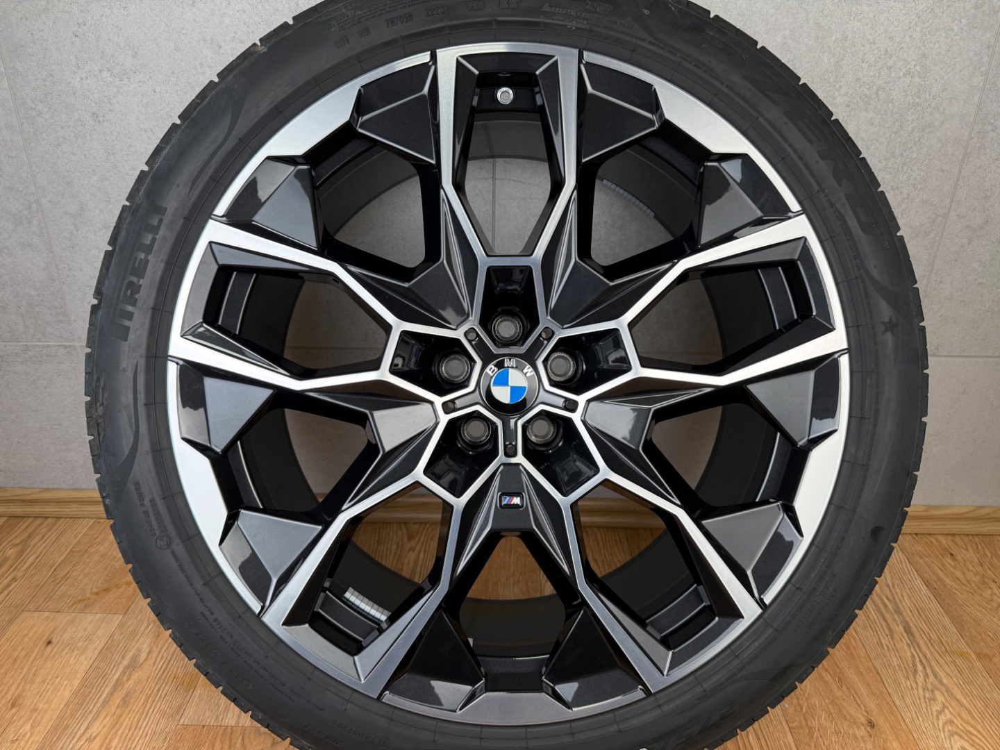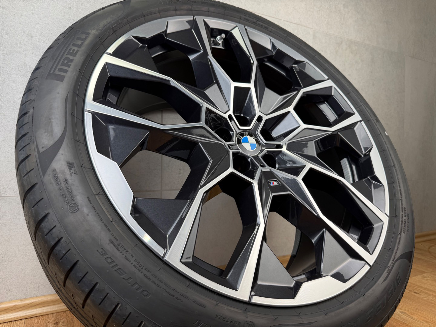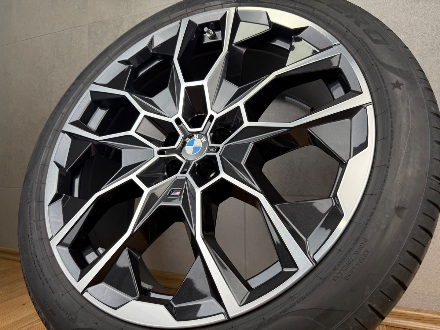 Originál kola BMW X7 G07 style 913M. Celá sada je v naprosto TOP stavu. Cena je uvedena bez DPH. Disky o rozměrech 9,5Jx22 ET32 a 10,5Jx22 ET43, rozteč 5x112. Výrobní čísla 6895935 6895936. Včetně kvalitních letních pneumatik Pirelli PZero Runflat rozměr 275/40 R22 a 315/35 R22 se vzorkem 99%. Včetně čidel tlaku v pneumatikách. Středové pokličky nejsou v ceně, lze je dokoupit za 400,- Kč za sadu. Není problém zaslat na dobírku. Sada č.0962