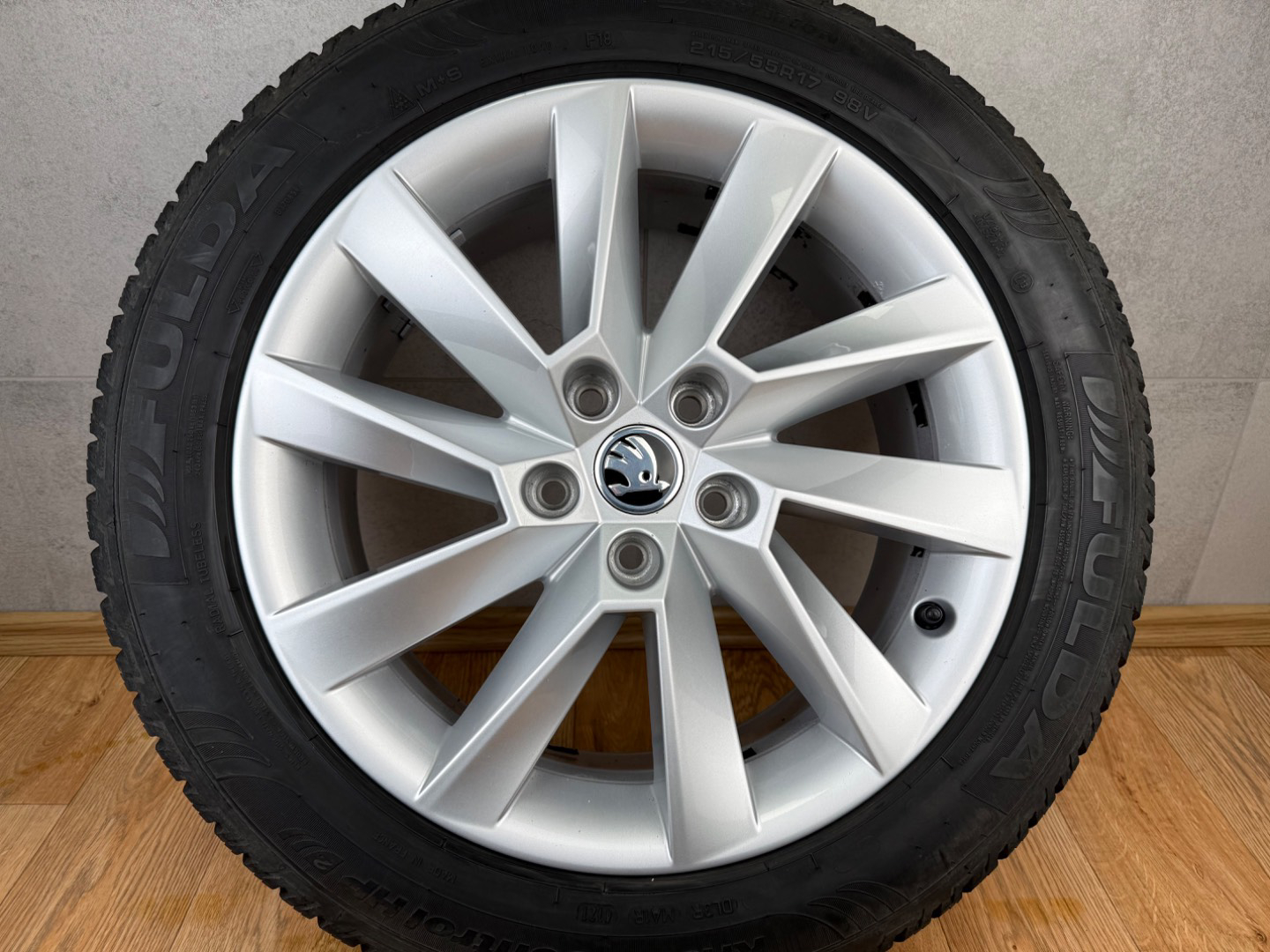 Originální sada Škoda Superb III/3 17” model Stratos. Celá sada je v moc pěkném stavu (pouze pár mini oděrek, na autě neviditelné-viz foto). Cena je uvedena bez DPH. Disky 7Jx17 ET40. Číslo dílu 3V0 601 025 3V0601025. Včetně zimních pneumatik Fulda Kristall Control HP o rozměru 215/55 R17 se vzorkem 7,5mm. Sada pasuje také na Škoda Karoq , Volkswagen Passat nebo Arteon a další modely. Středové pokličky nejsou v ceně, lze je dokoupit za 400,- Kč za celou sadu. Není problém zaslat na dobírku. Sada č. 0943