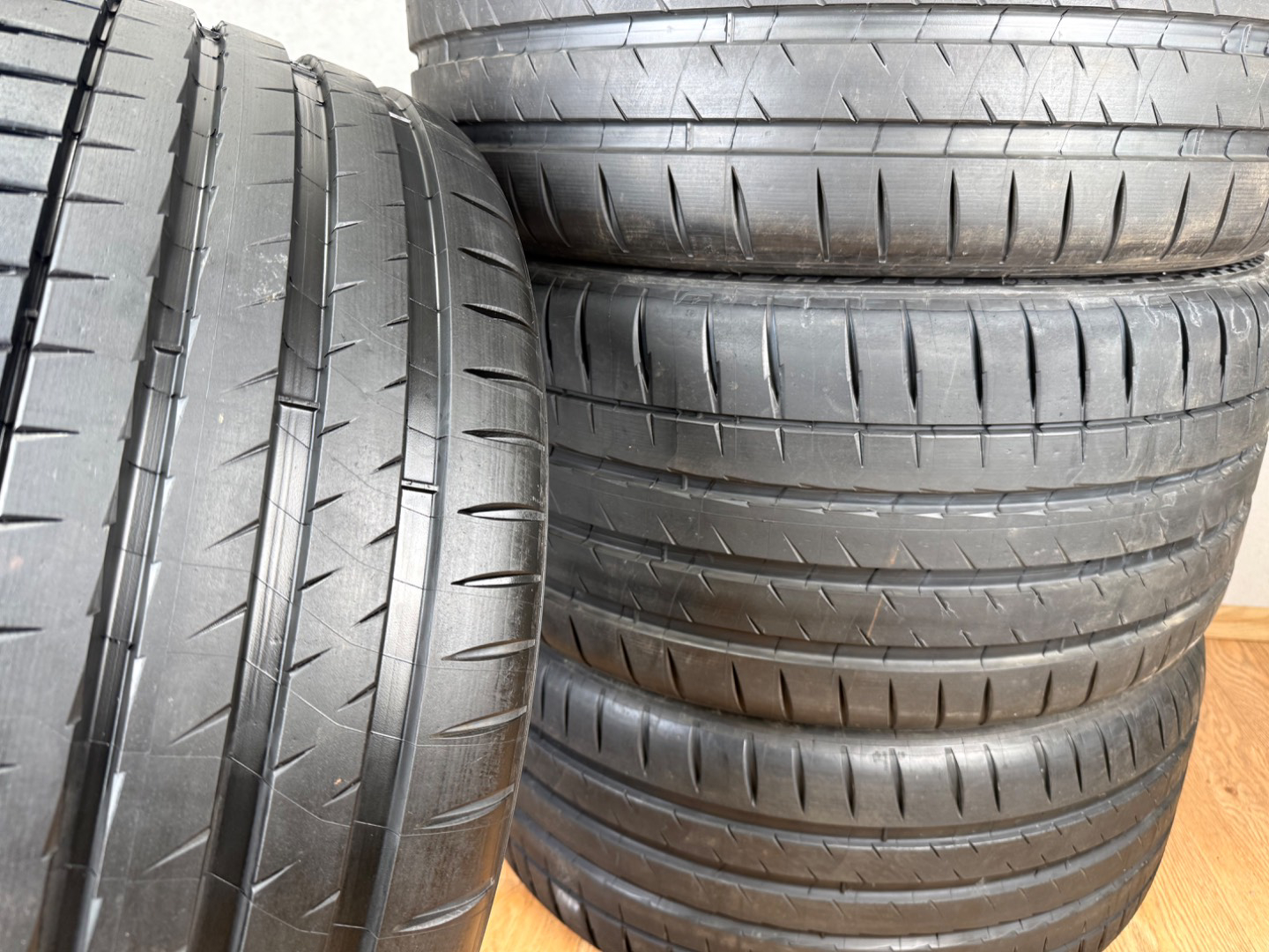 Zánovní letní pneumatiky Michelin Pilot Sport 4S o rozměru 265 / 40 ZR20 104Y a 295 / 35 ZR20 105Y se vzorkem 99%. Cena je uvedena bez DPH. Bez poškození a oprav. Sundáno z předváděcího vozu Mercedes E53 AMG W214. Pasují také na Mercedes SL R232 nebo AMG GT 4door A290 . Homologace MO1. Cena za celou sadu. Prodej pouze celé sady. Není problém zaslat na dobírku. Sada č. 0991