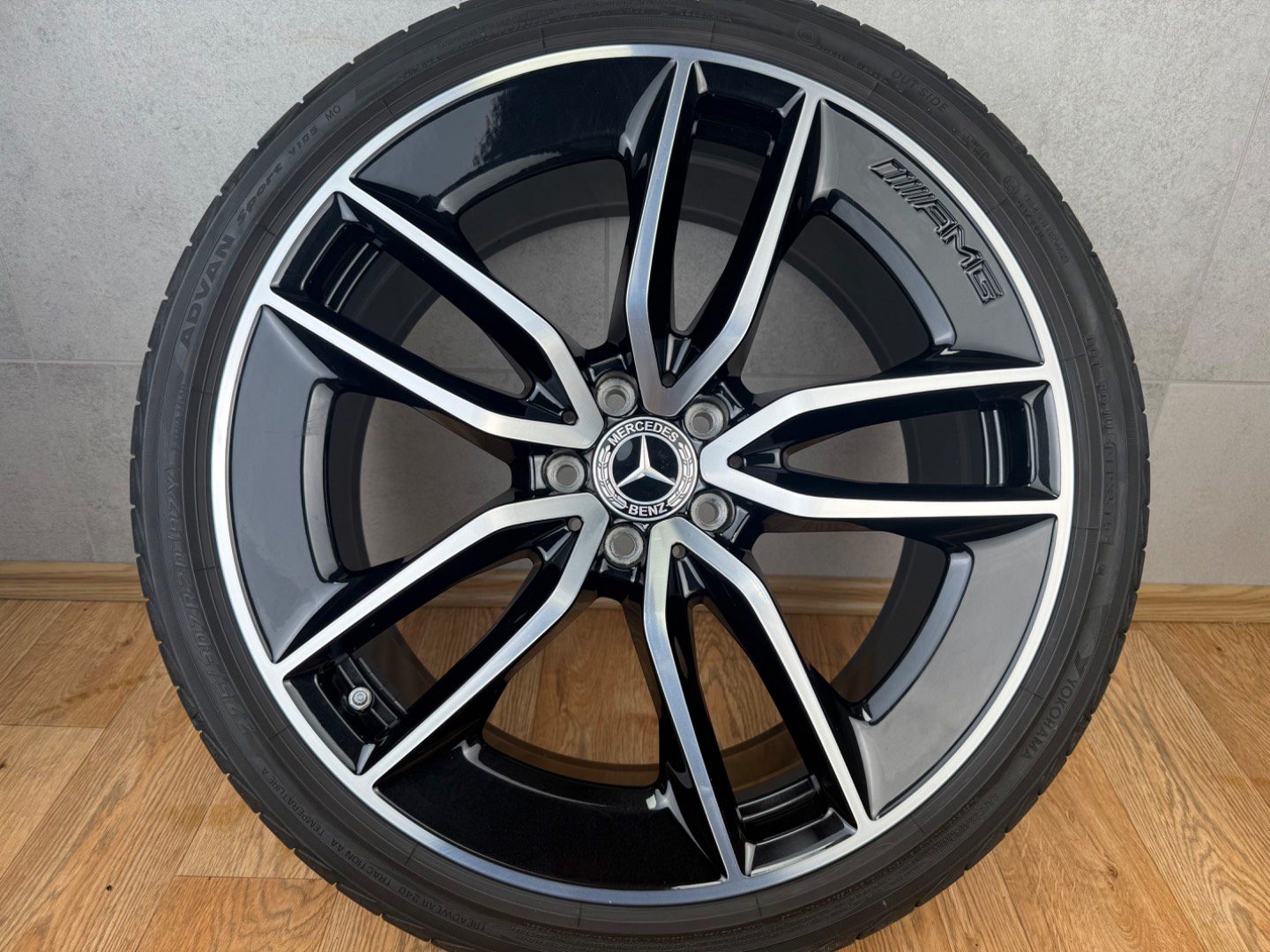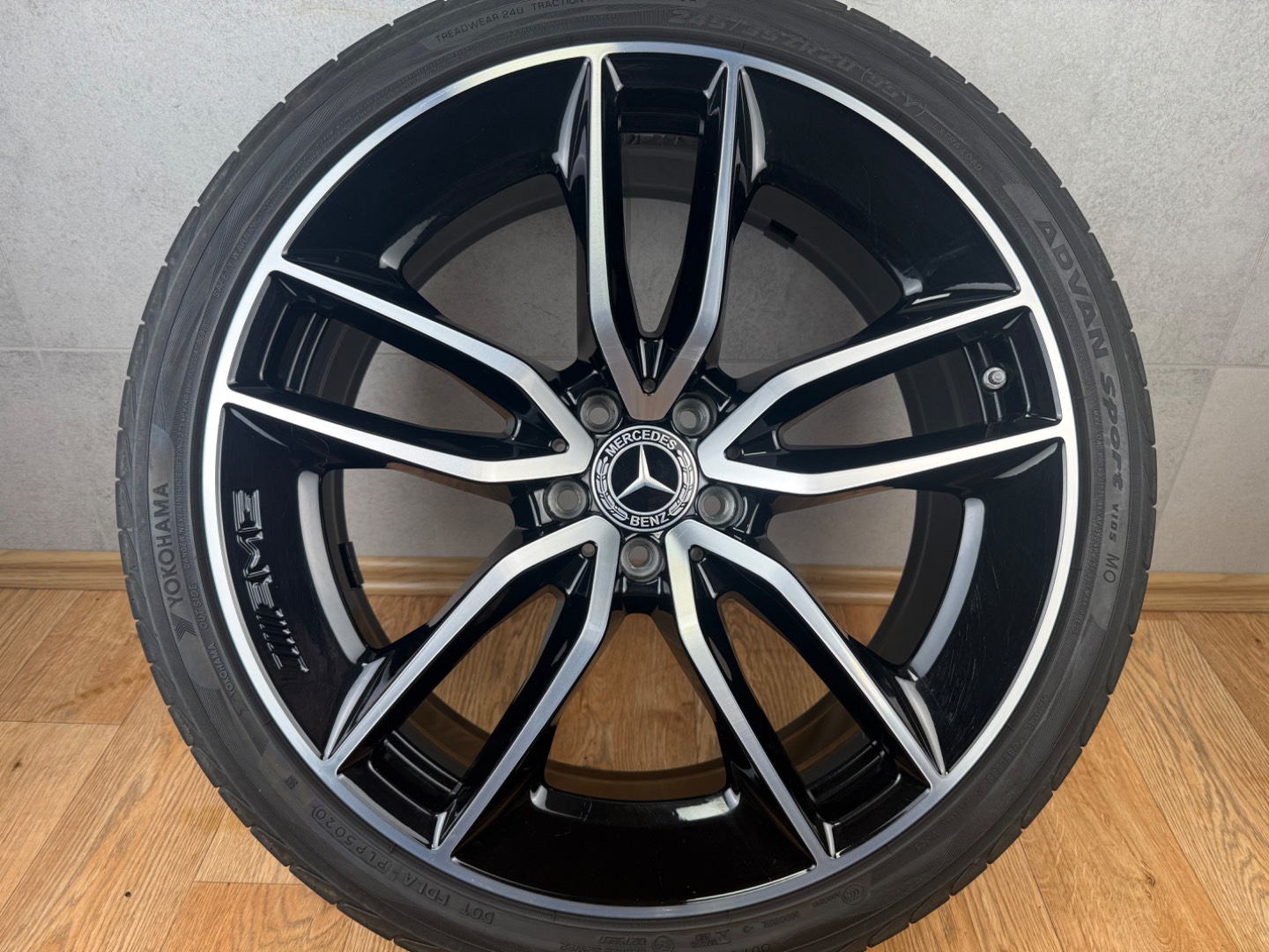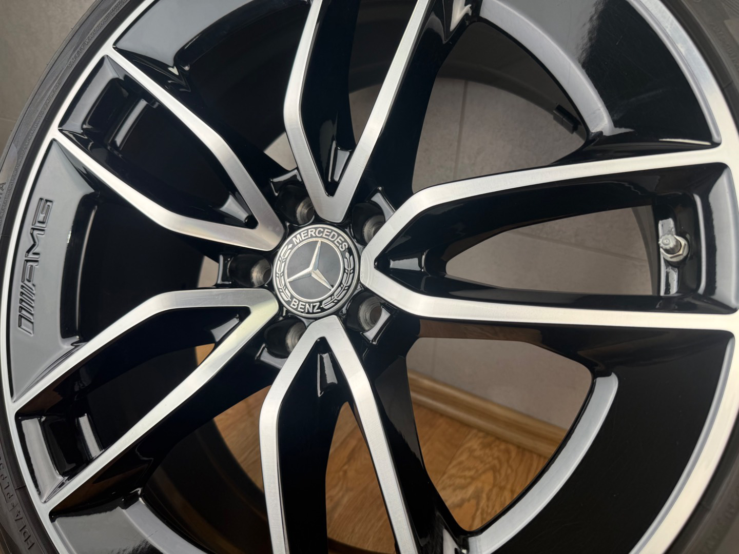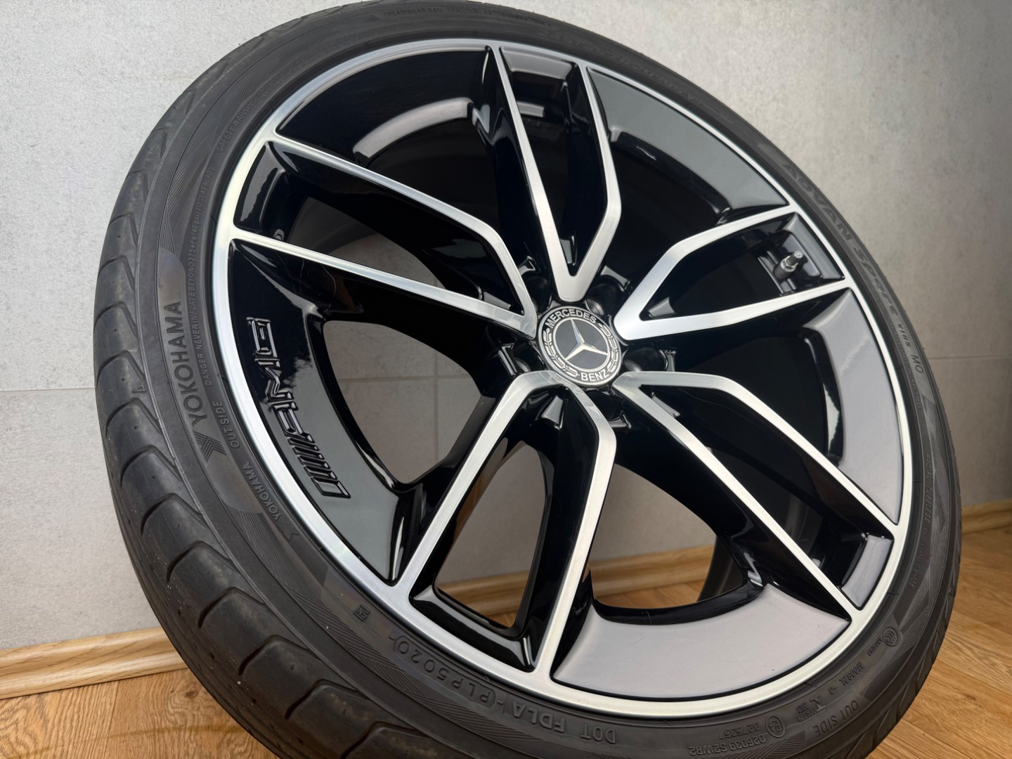 Originál sada Mercedes 20” CLS53 AMG. Celá sada je v TOP stavu. Cena je uvedena bez DPH. Disky o rozměru 8Jx20 ET10 a 9Jx20 ET28, 5x112. Číslo dílu A2574012200 a A2574013100. Včetně kvalitních letních pneumatik Yokohama AdvanSport V105 MO 245/35 R20 a 275/30 R20 se vzorkem 5,5-6mm. Sada je včetně senzorů tlaku v pneumatikách. Středové pokličky nejsou v ceně, lze je dokoupit za 400,- Kč za celou sadu. Není problém zaslat na dobírku. Sada č. 0994