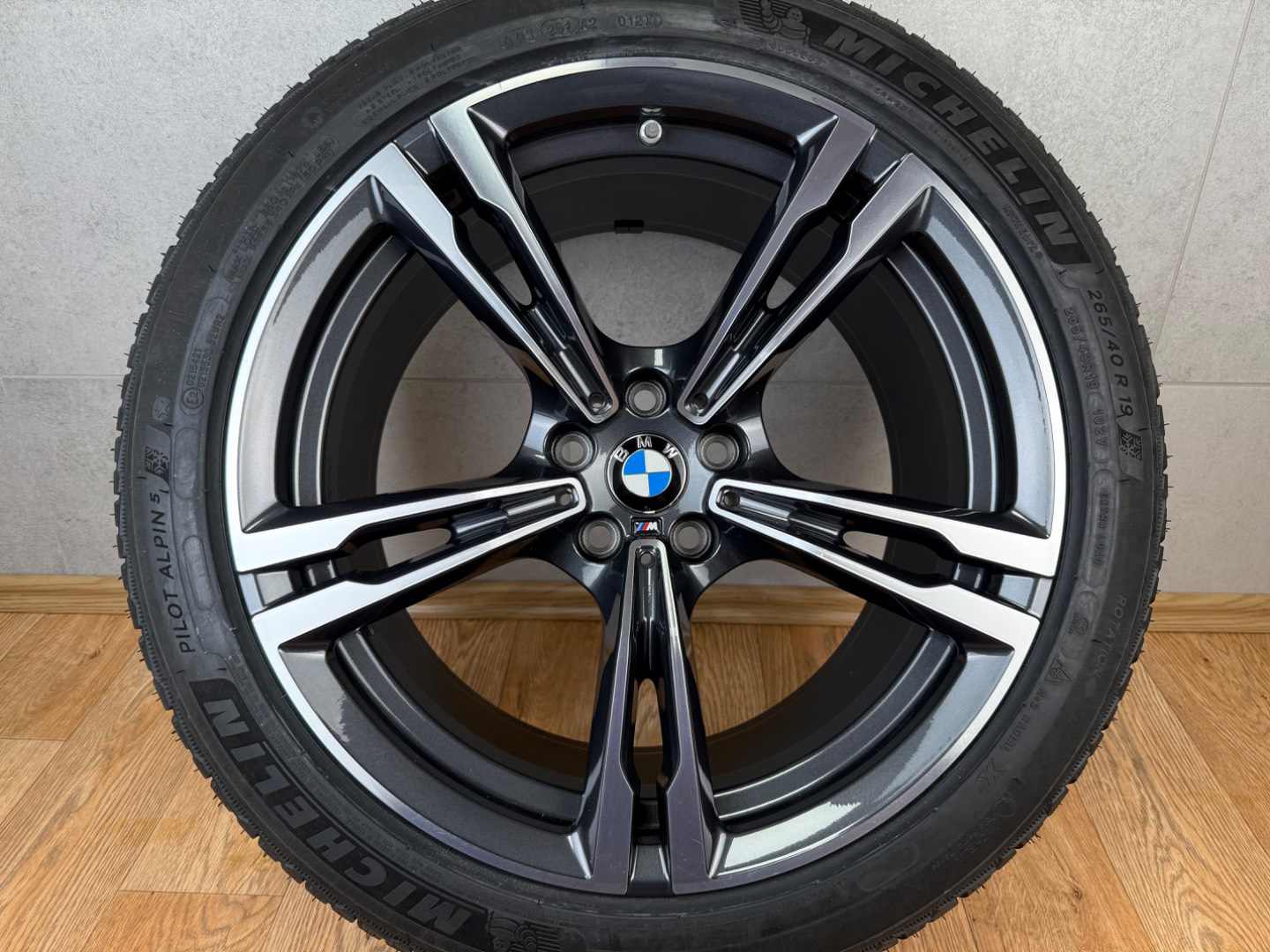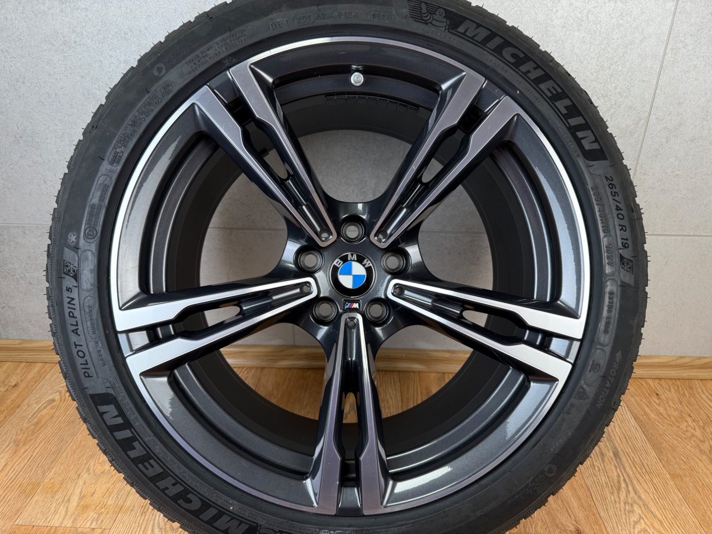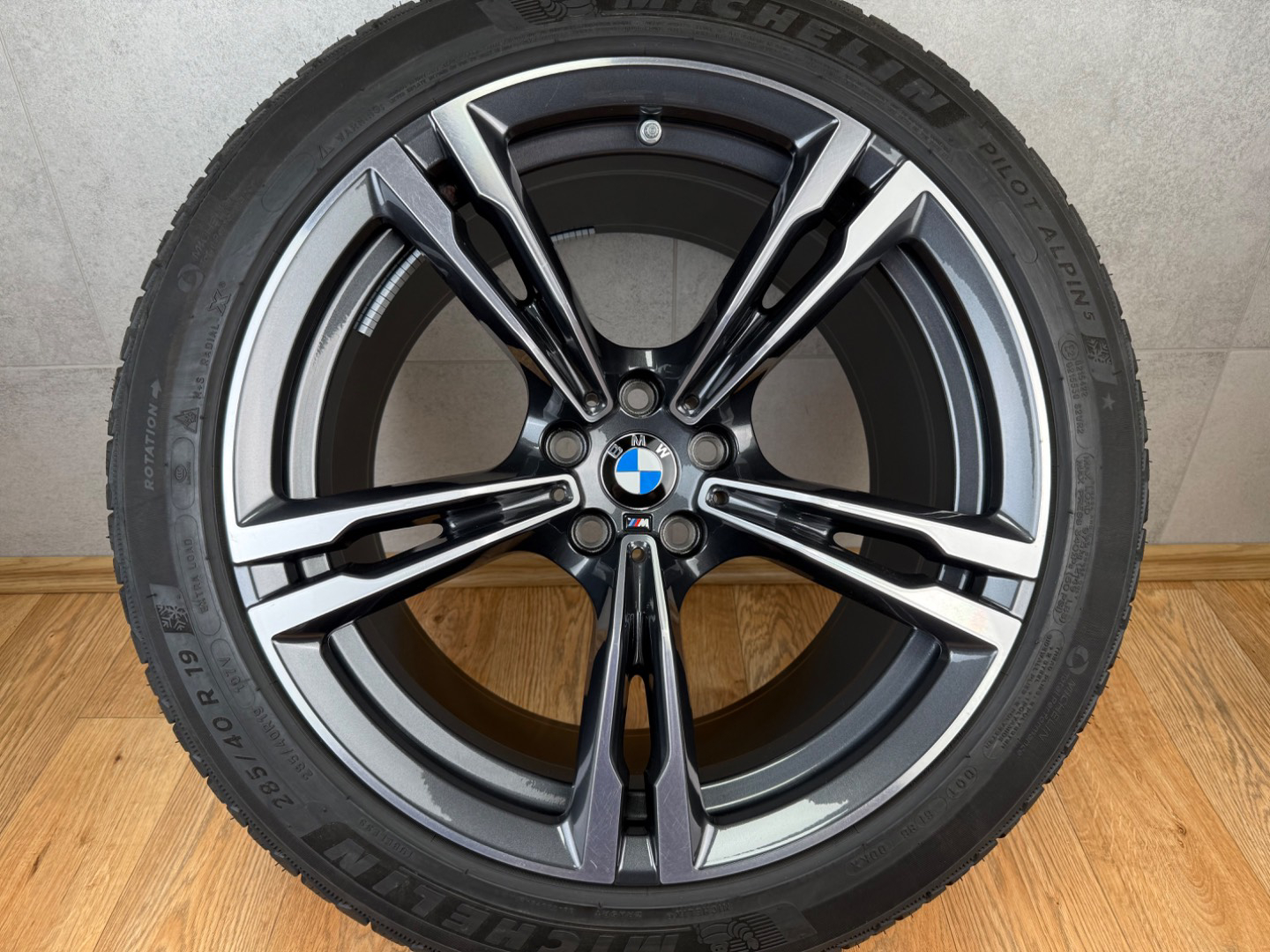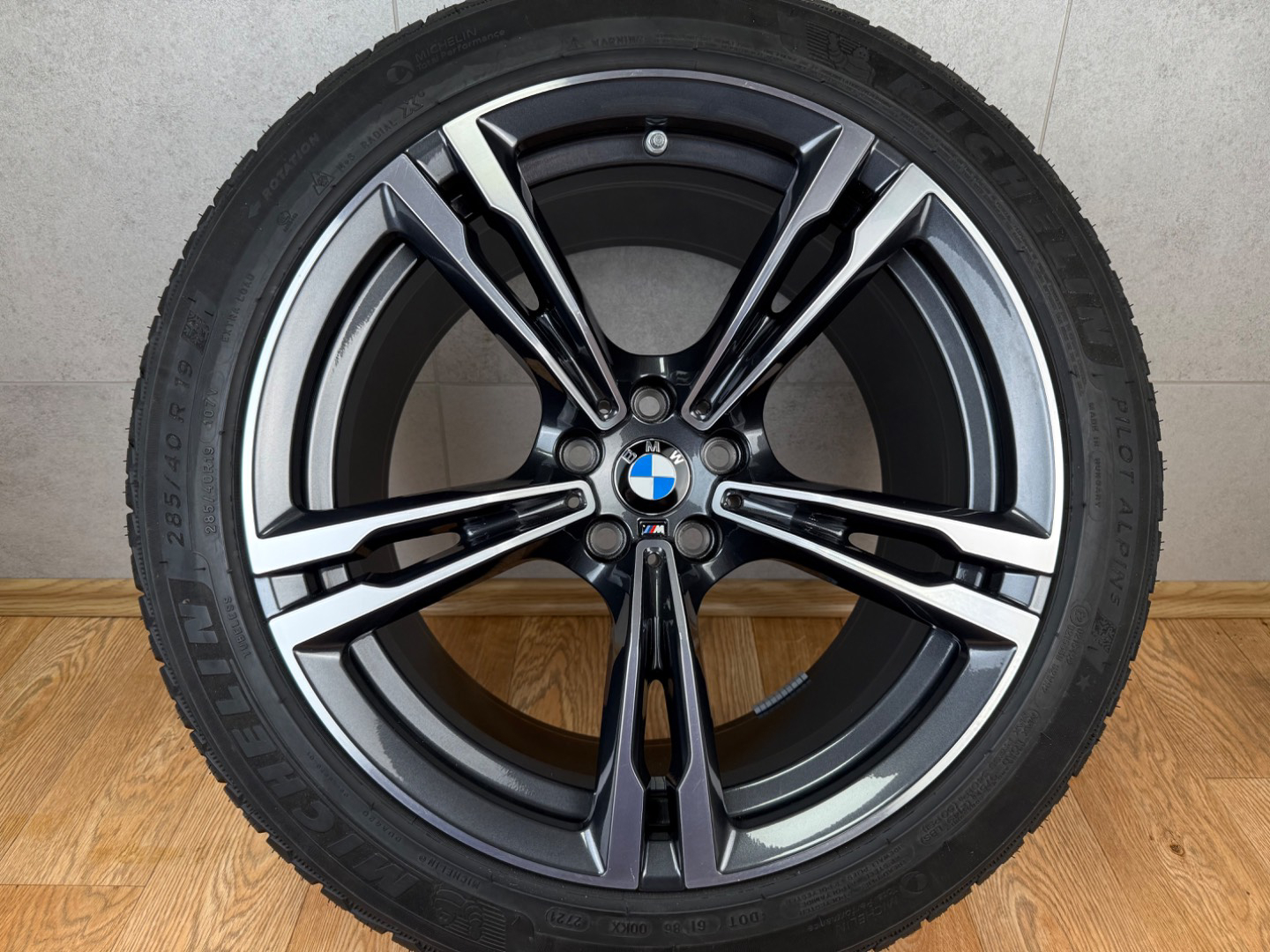 Sada originál BMW M5 R19 style 705 M. Celá sada je v TOP stavu (na jednom disku byla profesionálně opravena drobná oděrka). Cena je uvedena bez DPH. Disky 9,5Jx19 ET26 a 10,5Jx19 ET28, rozteč šroubů 5x112. Včetně zimních pneumatik Michelin PilotAlpin5 265/40 R19 a 285/40 R19 se vzorkem 2x7,5mm a 2x4,7mm. Pasují také na BMW M8 F92. V ceně sady jsou i senzory tlaku v pneumatikách. Středové pokličky nejsou v ceně, lze je dokoupit za 400,- Kč za celou sadu. Není problém zaslat na dobírku. Sada č. 0898